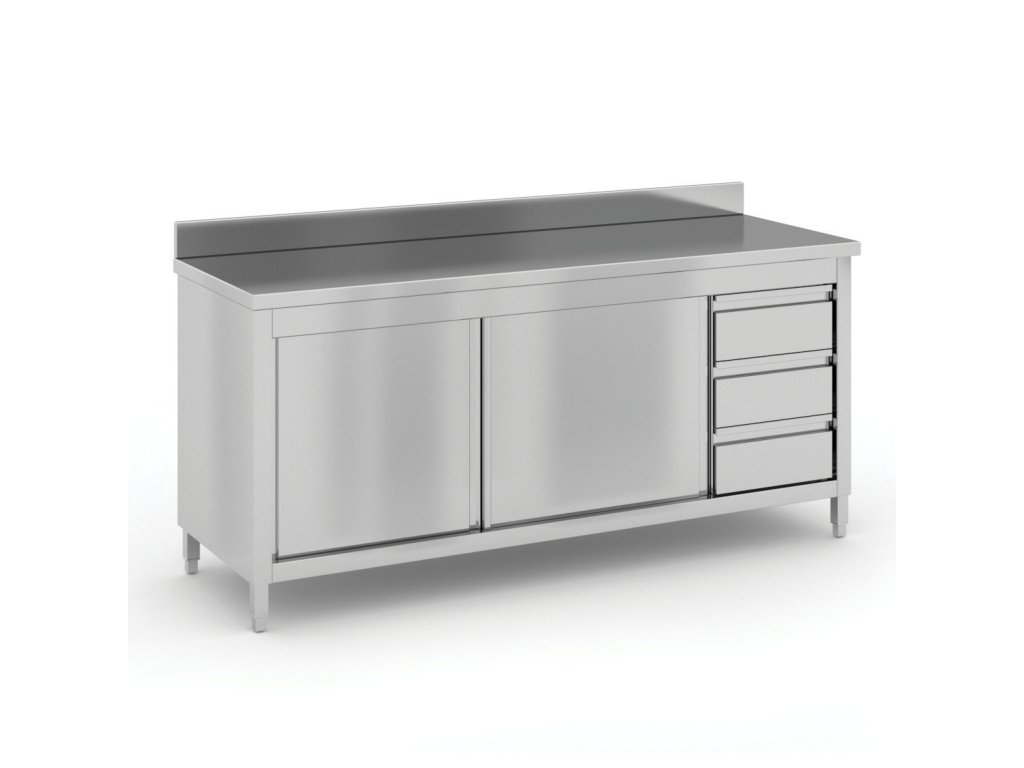 Nerezový pracovní stůl se skříňkou a zásuvkami, 1800 x 600 x 850 mm