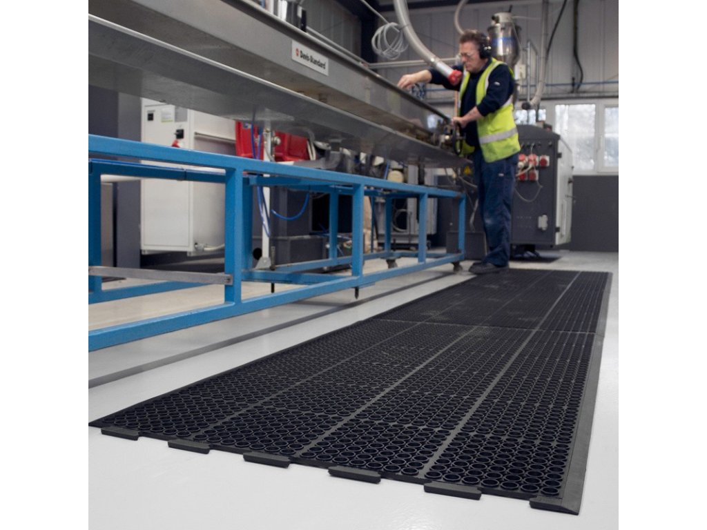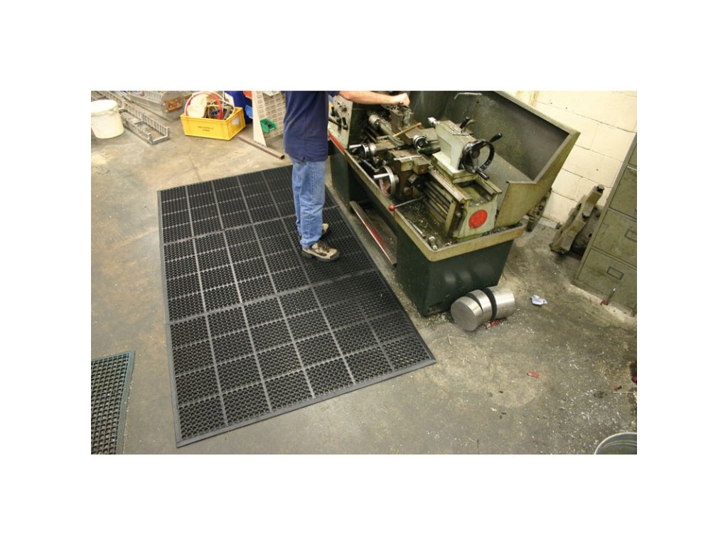 Odolná průmyslová gumová rohož, protiúnavová, 1 spoj delší strana, 90 x 150 cm, černá