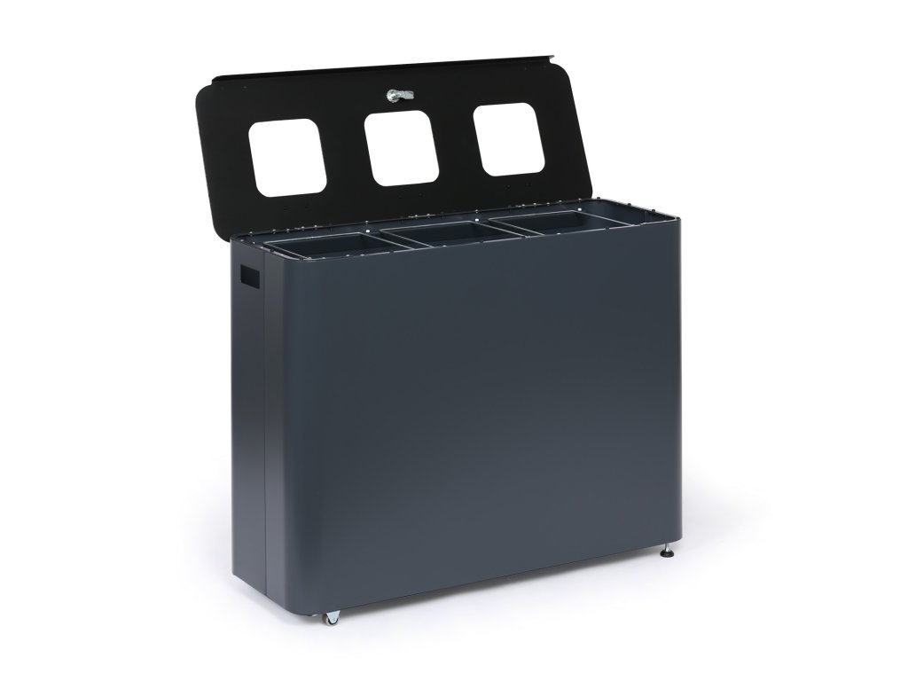 Odpadkový koš na tříděný odpad, 3 x 60 l, lakovaný šedý