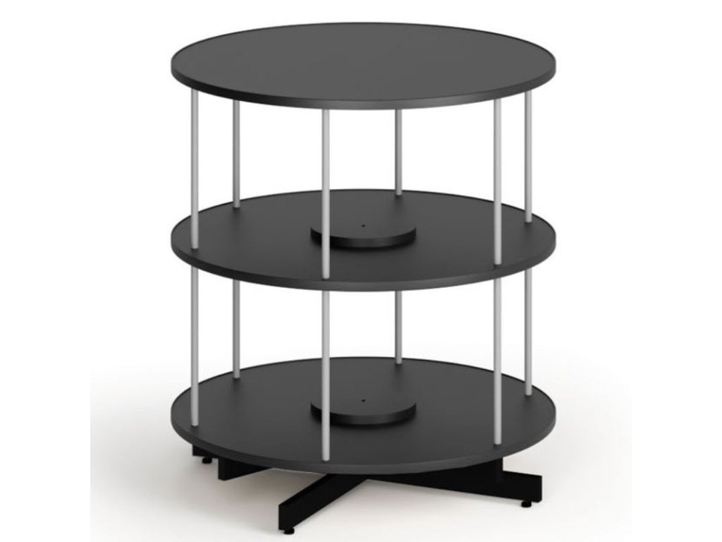Archivační systém, který Vám ušetří prostor při archivaci Vašich písemností. Díky otočnému mechanismu lze uspořádat až 144 pořadačů, otočný sloup si vyžádá jen asi 1 m2 pro jeho umístění a pro vlastní přístup k pořadačům. Při běžném použití archivační skříně, nebo regálů na pořadače potřebujete prostor cca 2 m2. Výhoda úspory místa při použití otočných archivačních sloupů se zvyšuje úměrně s počtem instalovaných sloupů, například při použití dvou sloupů je již úspora místa 1,5 m2. Otočná skříň je posazena na otočný kříž, velmi lehké otáčení zajišťují ložiska umístěná přímo v otočném stojanu vybaveném stavěcími šrouby, které slouží k vyrovnání možných nerovností podlahy. Konstrukce skříně je samonosná, zajišťující velmi dobrou pevnost a stabilitu. Patra skříně jsou z laminované dřevotřísky s plastovu hranou zabraňujcí samovolnému vysunutí pořadače mimo obvod skříně. Patro je možno otočit, čímž vznikne deska bez hran zabraňující samovolnému vysunutí pořadačů. Kapacita jednoho patra je 24 pořadačů. Patro tvoří kruhová laminová deska o průměru 80 cm. Všechna patra se otáčejí najednou. Lze vytvořit až šestipatrouvou archivační otočnou skříň. Standardní barevné provedení je v šedé a černé barvě. Pořadače na fotografiích nejsou součástí dodávky. Skříň je dodávána v kartonu s návodem k jednoduché montáži.
