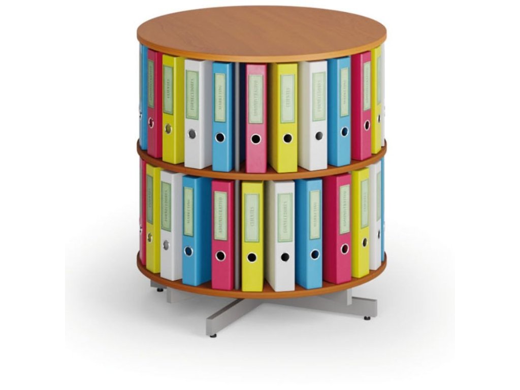 Otočný regál na šanony, 2 patra, třešeň