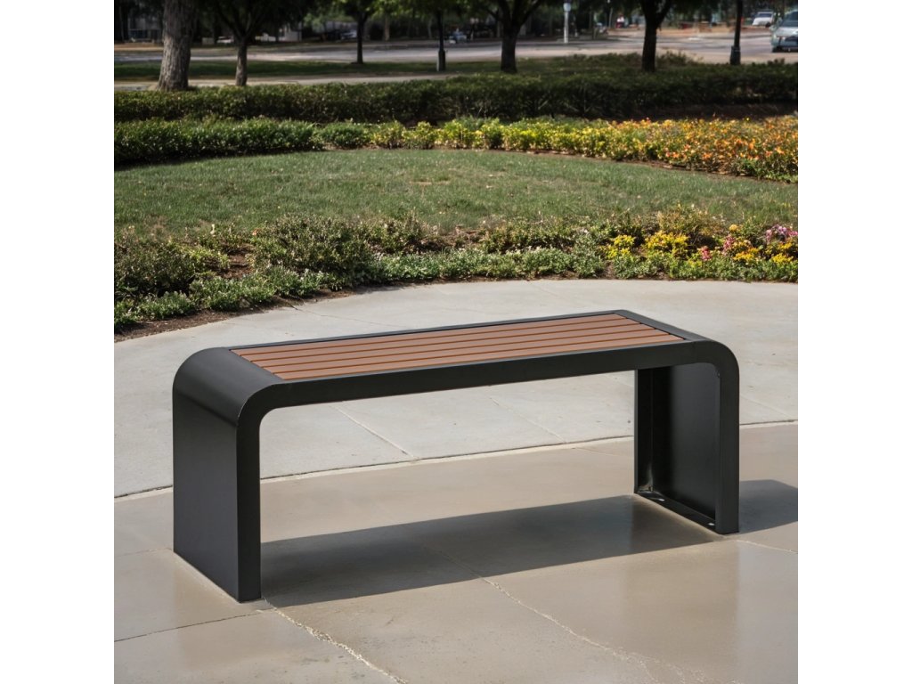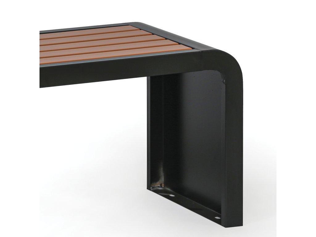 Elegantní venkovní lavička RESTO s moderním zaobleným designem na bocích nabízí ideální spojení stylu a odolnosti. Robustní ocelová konstrukce s černým práškovým lakem a sedákem ze světle hnědých odolných dřevoplastových desek zajišťují dlouhou životnost i při venkovním použití. Díky nosnosti až 300 kg a možnosti kotvení k zemi je lavička praktickou volbou pro veřejné prostory, parky, nákupní centra a podobně.