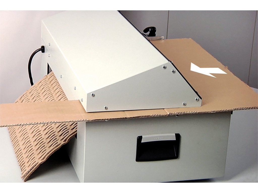 - Velký a pohodlný podpěrný stůl pro karton, který zajišťuje snadnou obsluhu.