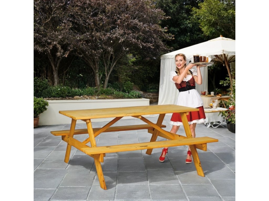 Piknikový set je velmi jednoduchý na sestavení a použití a díky svým rozměrům poskytuje dostatek místa pro skupinu lidí. Je vhodný pro použití ve venkovních posezeních pivnic, na zahradách, terasách nebo při grilování. Celkově lze říci, že piknikový set je praktický, odolný a esteticky přírodní nábytek, který poskytuje pohodlné a příjemné posezení.