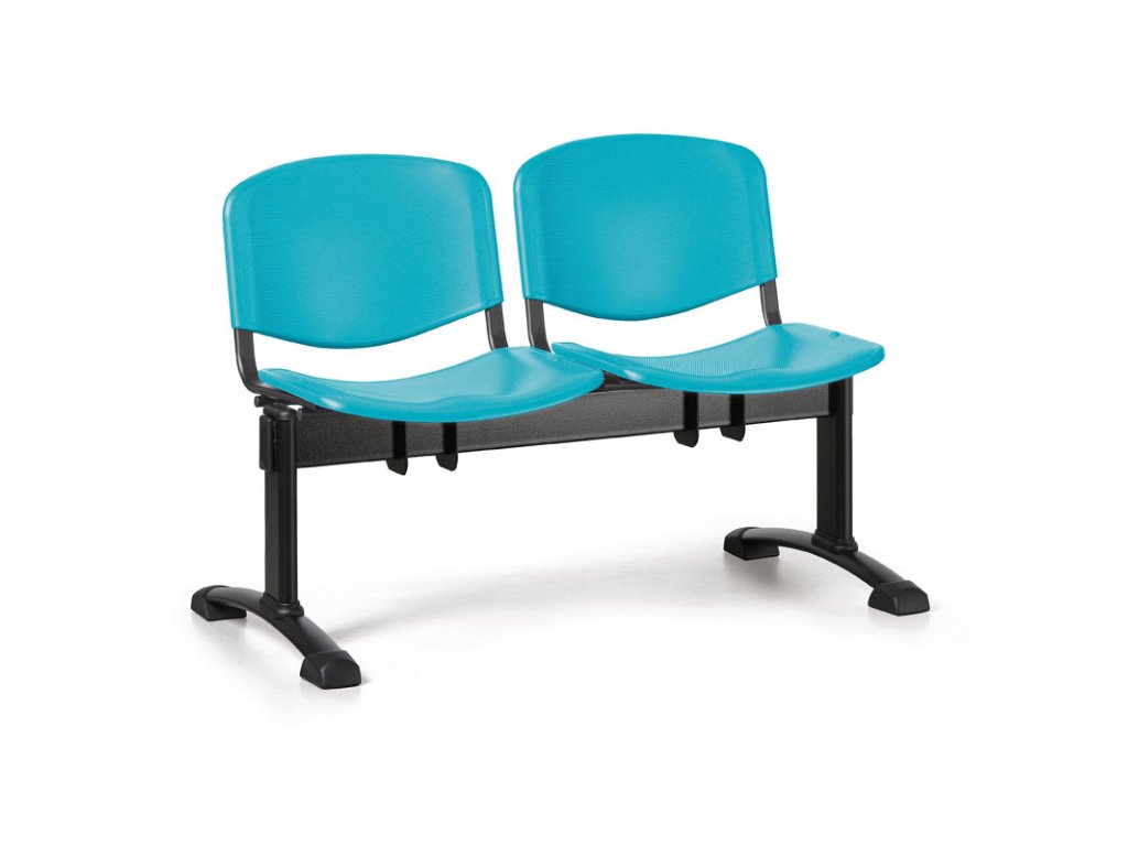 Plastová lavice do čekáren ISO, 2-sedák, zelená, černé nohy
