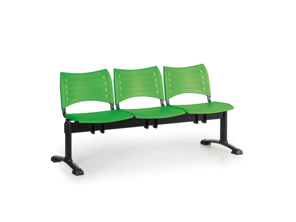 Plastová lavice do čekáren VISIO, 3-sedák, zelená, černé nohy