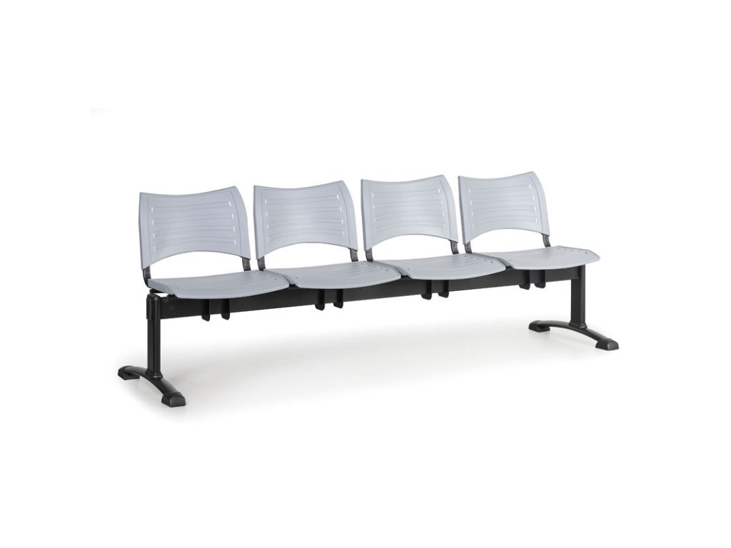 Plastová lavice do čekáren VISIO, 4-sedák, šedá, černé nohy