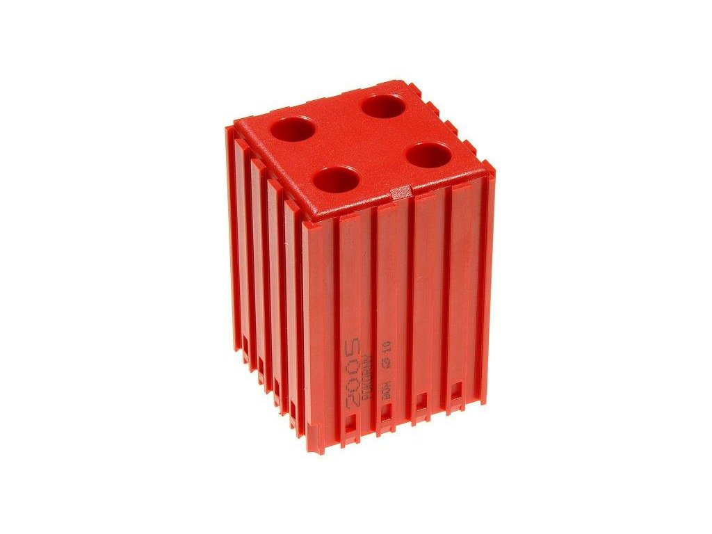 Plastový box na nářadí s válcovou stopkou D10, modul 5x5, 4 dutiny, červená