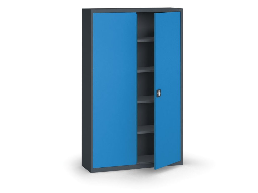 Plechová policová skříň na nářadí KOVONA, 1950 x 1200 x 400 mm, 4 police, antracit/modrá