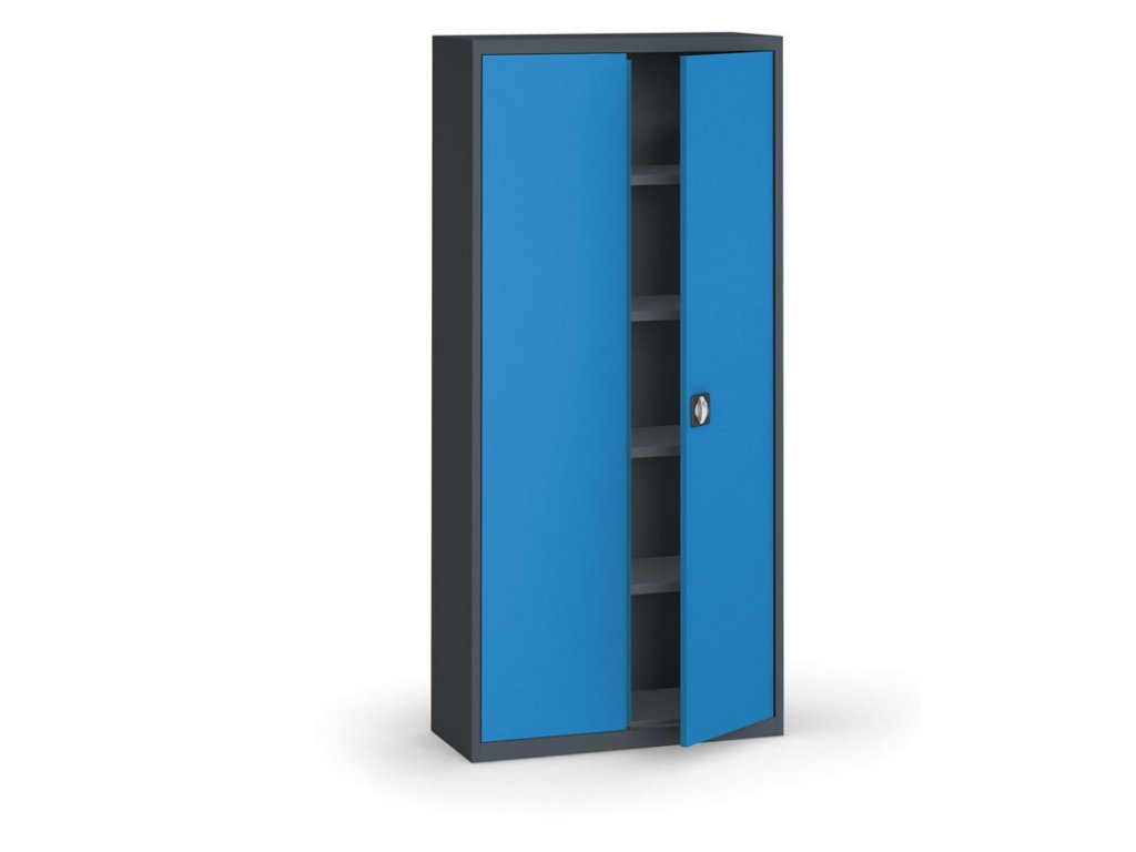 Plechová policová skříň na nářadí KOVONA, 1950 x 950 x 400 mm, 4 police, antracit/modrá