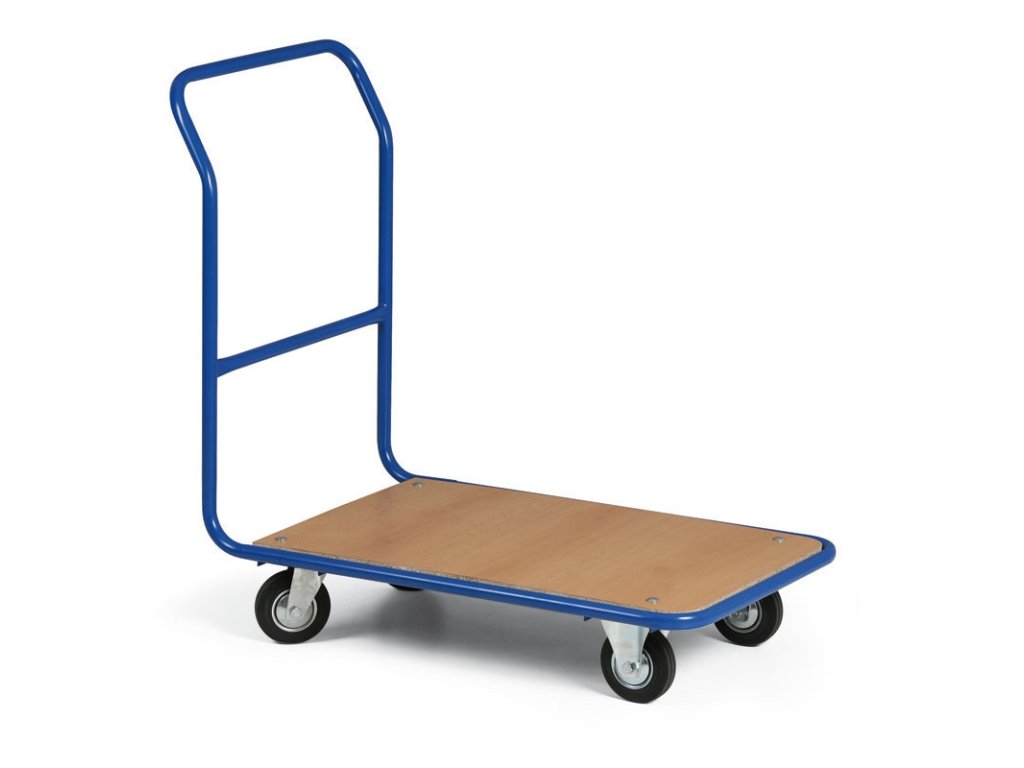 Lehký svařovaný plošinový vozík, který je vhodný k přepravě menších balíku či jiného drobnějšího nákladu. Výhodou je jeho nízká hmotnost a snadná manipulace. Ložná plocha je vyrobena z laminované dřevotřísky se vzorem světlý buk. Kola jsou plnopryžová s jehlovými ložisky, díky čemuž je zaručen jeho tichý chod. Dvě pevná a dvě otočná kola podle vlastní osy jsou o průměru 125 mm. Obruče kol jsou na výběr z černé nebo šedé nešpinivé pryže. Jedno otočné kolo je vybaveno brzdou pro zabezpečení proti nežádoucímu rozjetí vozíku.