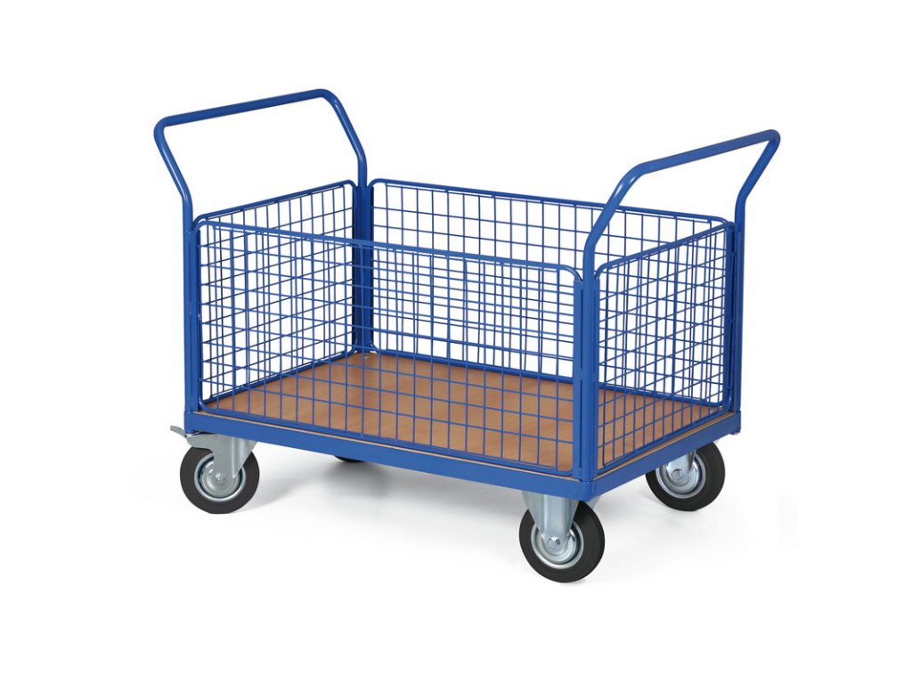 Plošinový vozík - 4 drátěné výplně, 1200x800 mm, nosnost 300 kg, kola 160 mm s černou pryží