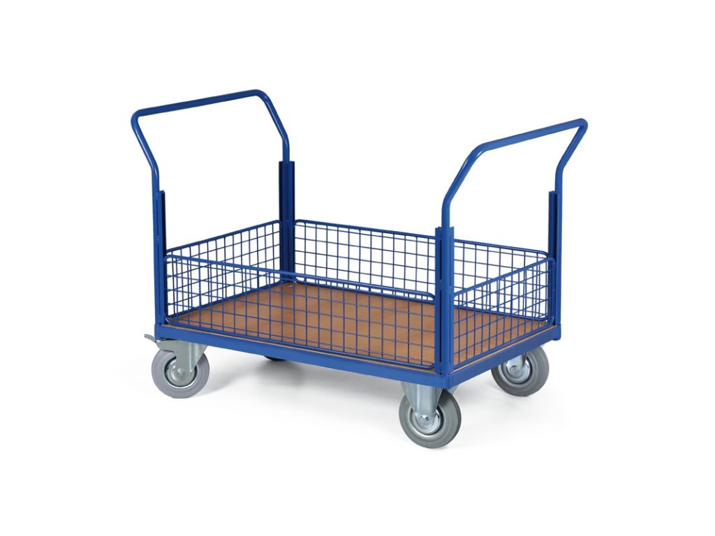 Multifunkční přepravní vozíky umožňující sestavení variant dle přání zákazníka pouhým zasunutím požadované nástavby a zajištění šroubem. Speciální uložení madel zajišťuje vždy pevné spojení madla s platformou vozíku a nedovoluje tak uvolnění (vyviklání) madla v jeho uložení po celou životnost vozíku. Ložná plocha je svařena z ocelových profilů, konstrukční řešení zaručuje nejlepší stabilitu i při vysokých zatíženích. Kovové části jsou lakovány práškovým lakem RAL 5005. Ložná plocha a dřevěné výplně jsou vyrobeny z laminované dřevotřísky se vzorem světlý buk. Boční a přední dřevěné výplně jsou olemovány modrou ABS hranou o šířce 1 mm, volitelně lze doplnit o kovový ochranný "U" profil.