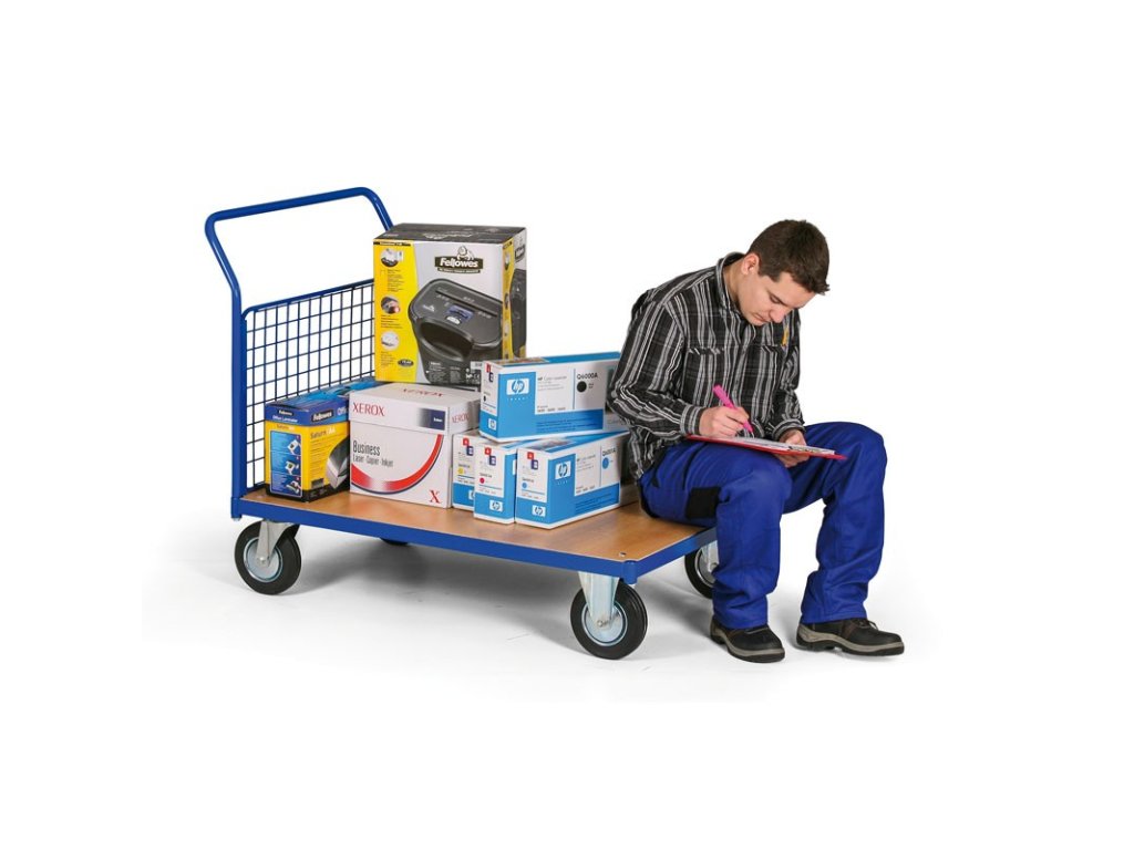 Plošinový vozík s drátěnou výplní madla, 1000x700 mm, nosnost 300 kg, kola 160 mm s šedou pryží
