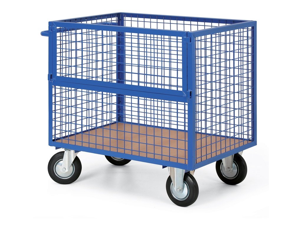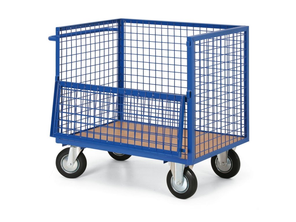 Plošinový vozík s drátěnými stěnami