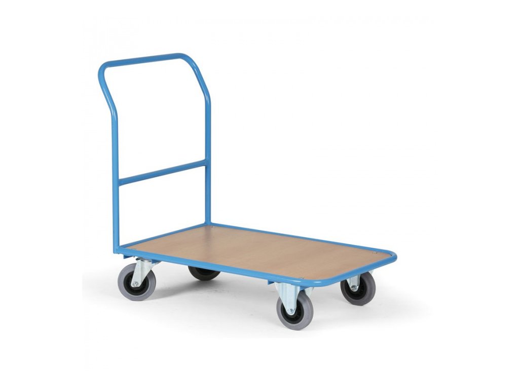 Plošinový vozík je díky své svařované robustní konstrukci z ocelových trubek a profilů vhodný na přepravu těžkých a objemných nákladů. Ložná plocha je vyrobena z laminované dřevotřísky se vzorem světlý buk. Kola jsou o průměru 200 mm, dvě pevná a dvě otočná podle vlastní osy. Jedno otočné kolo je vybaveno brzdou. Obruče kol jsou vyrobeny z šedé nešpinivé pryže.
