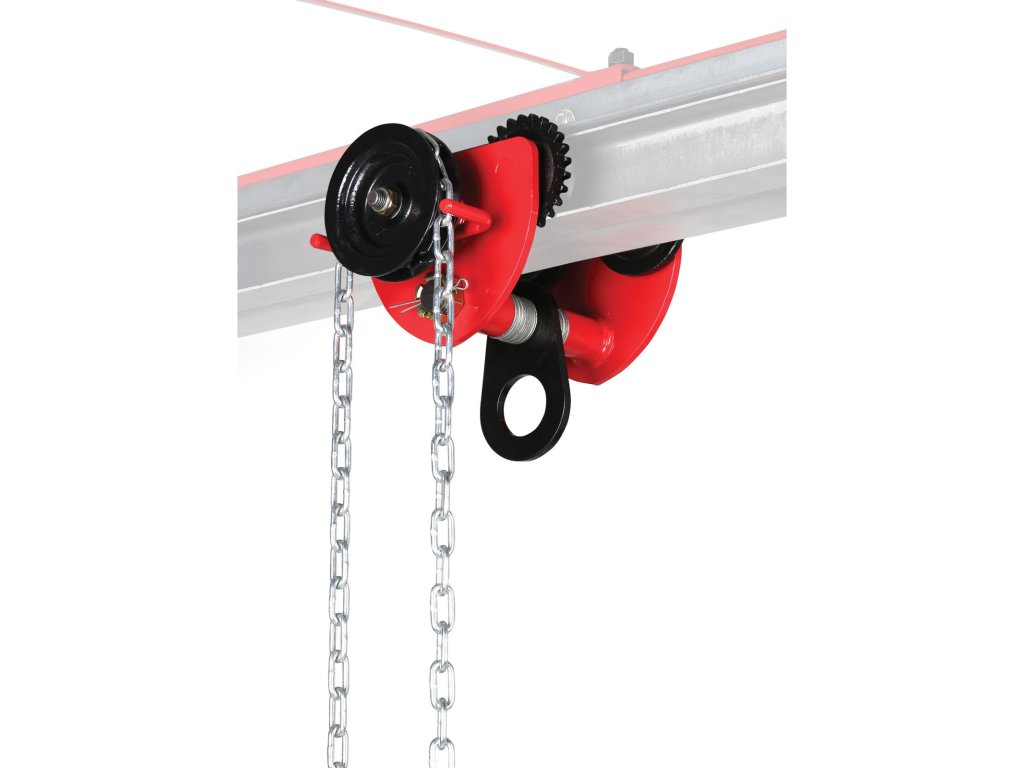 Pojezdová kočka s řetězovým navijákem je určená pro zavěšení na železné profily typu "Í". Je opatřena okem pro uchycení řetězového kladkostroje. Bezproblémové ovládání posuvu jeřábové kočky je zajištěno prostřednictvím řetězového navijáku.