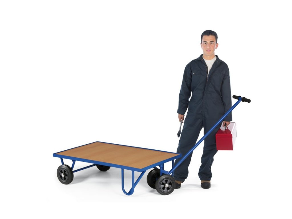 Výhodou této pojízdné plošiny je velmi snadná manipulace s přesným vedením vozíku a jeho bezpečné odstavení i s nákladem, který je za absence dvou kol zajištěn proti samovolnému posunu. Není nutno pořizovat ke každému vozíku také oj, plně postačí jen jedna na několik vozíků. Vozíky lze bezpečně odstavit na zadní hranu, nezaberou tak mnoho místa a jsou připraveny vždy k použití. Konstrukce je svařovaná z ocelových trubek a profilů. Ložná plocha je vyrobena z laminované dřevotřísky se vzorem světlý buk. Kola jsou dodávána předním francouzským výrobcem firmou Guitel, obruče jsou černé plnopryžové s jehlovými ložisky, díky čemuž je zaručen tichý a lehký chod. Kovové části jsou lakovány práškovým lakem v odstínu 5005 dle barevné stupnice RAL.