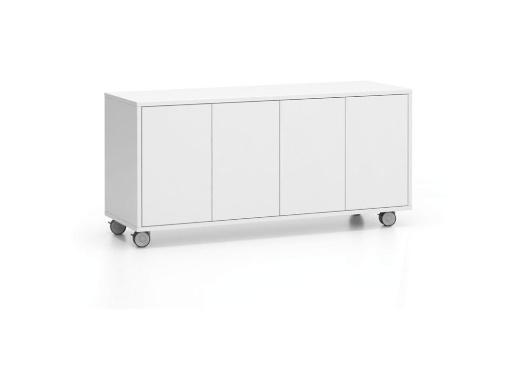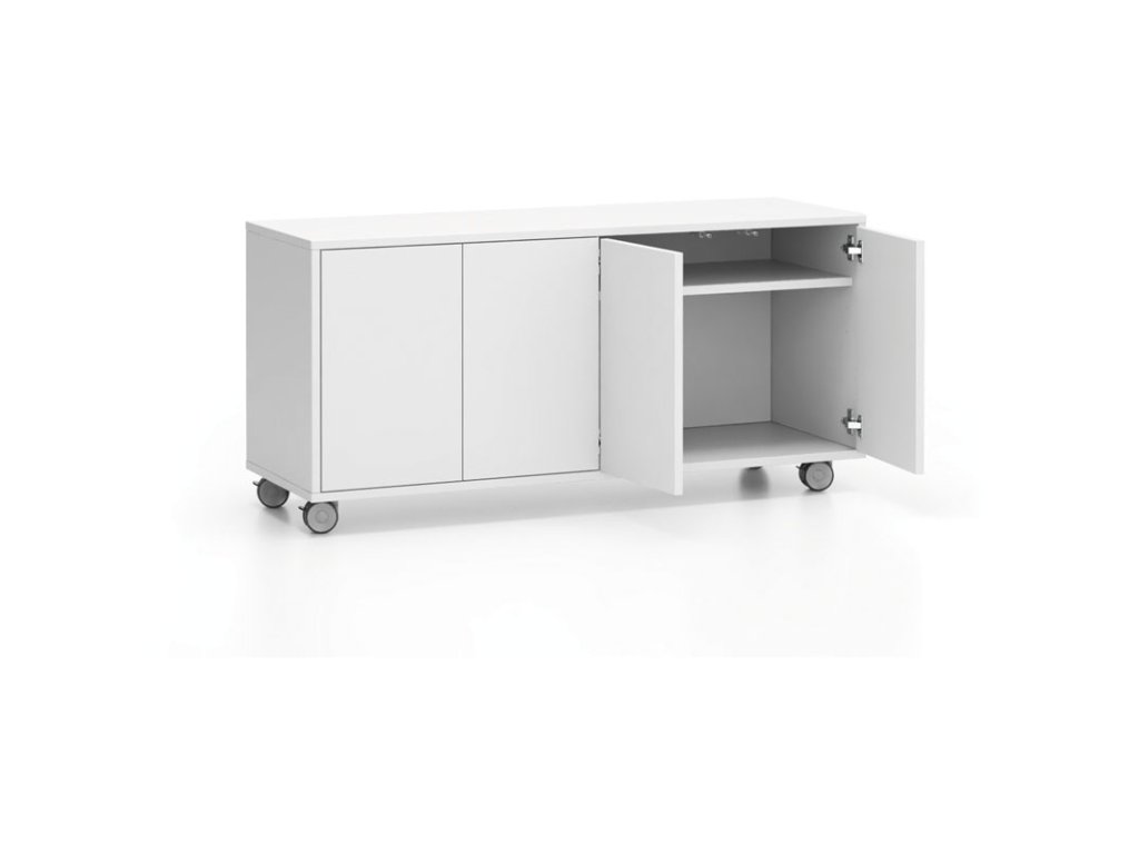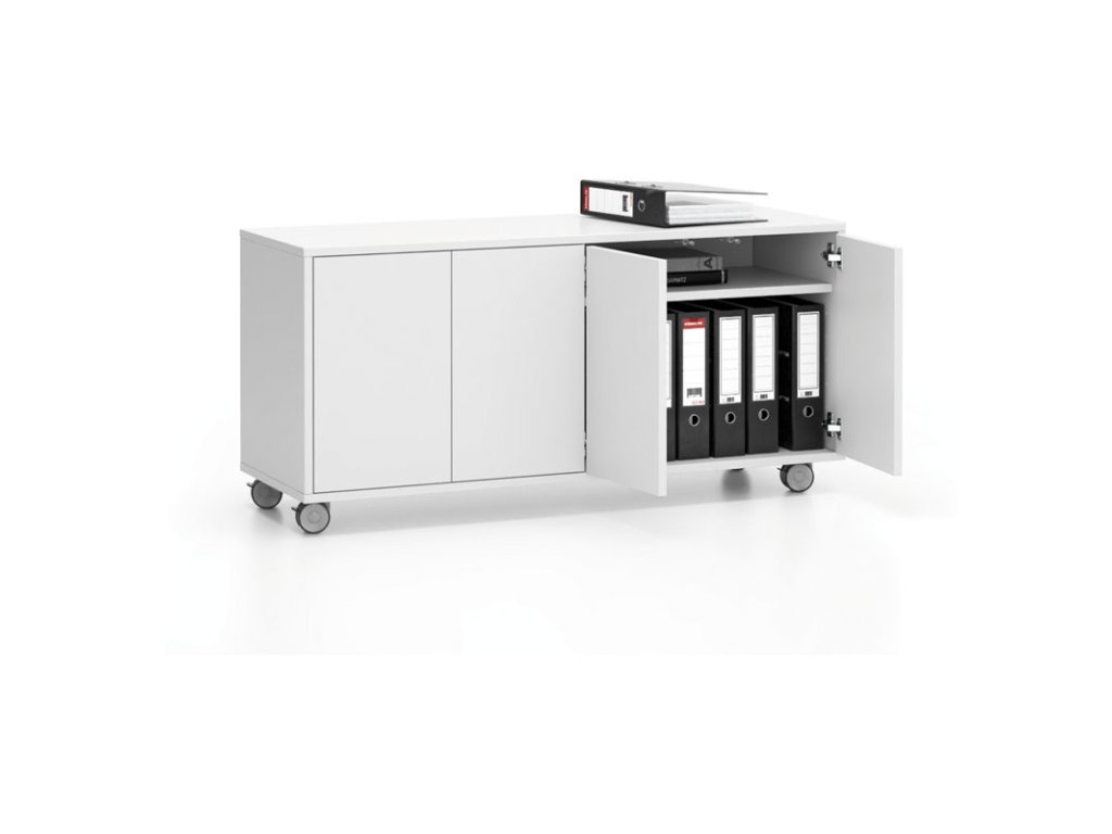 Pojízdná skříňka na kolečkách s dveřmi LAYERS, dlouhá, 1200 x 400 x 575 mm, bílá