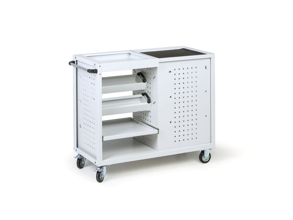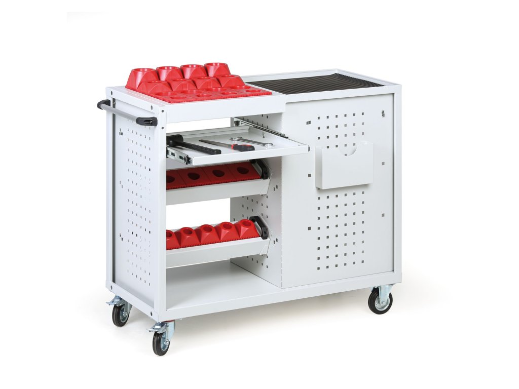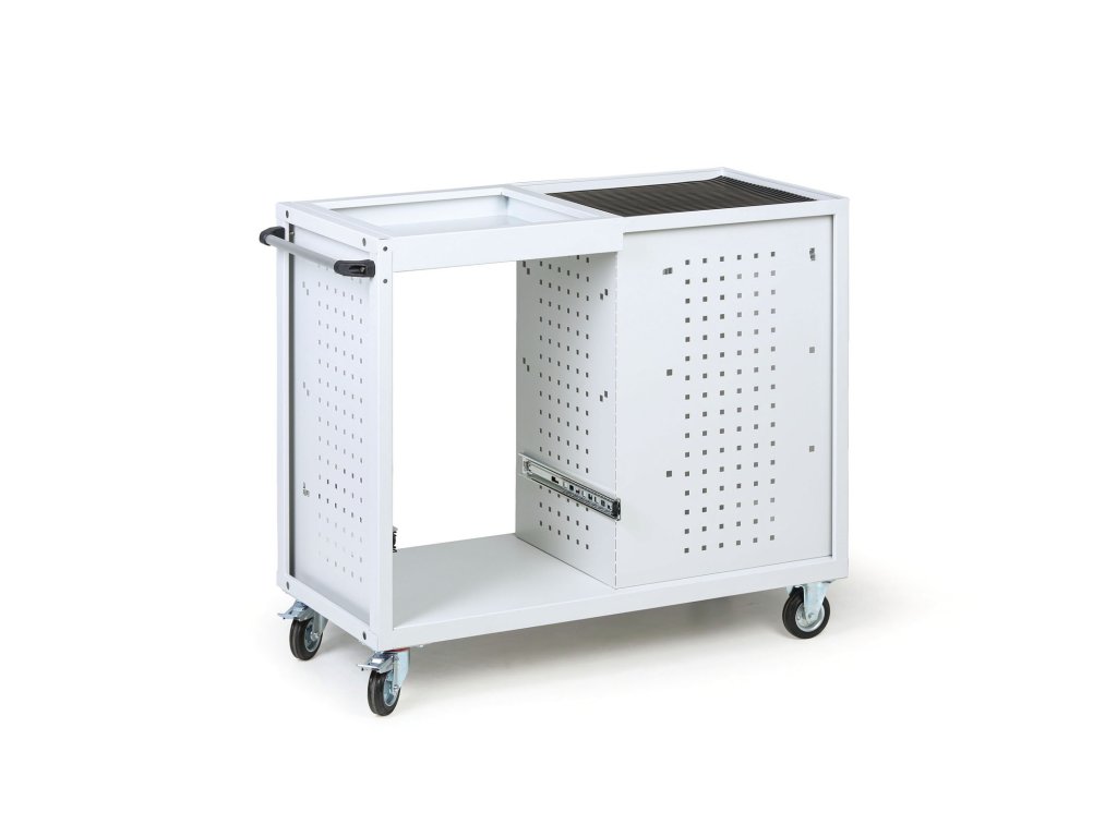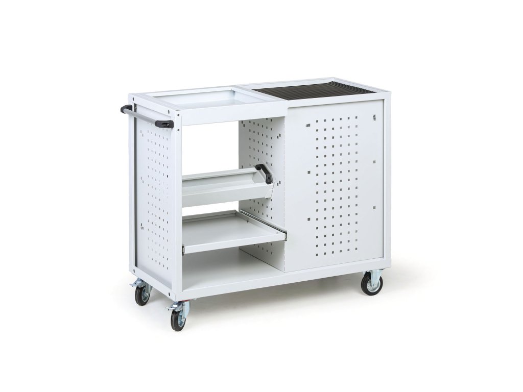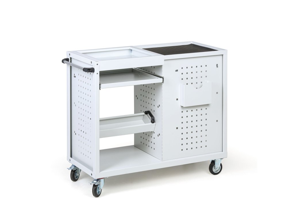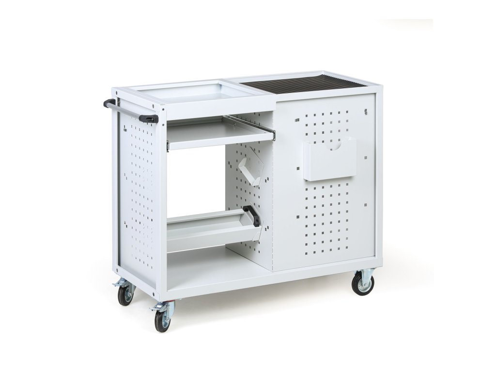 - stěny vozíku jsou vybaveny perforací pro uchycení držáků nářadí a držákem na dokumenty