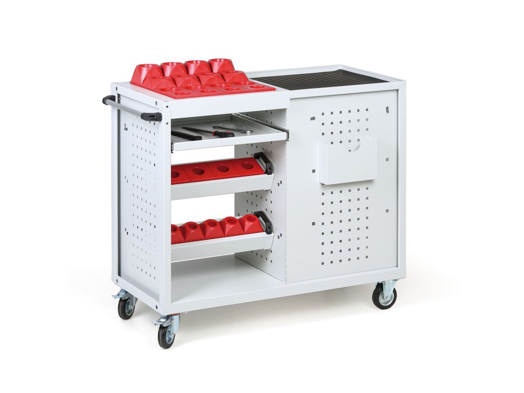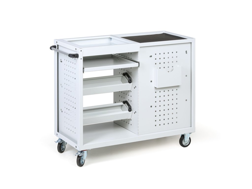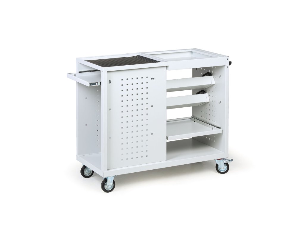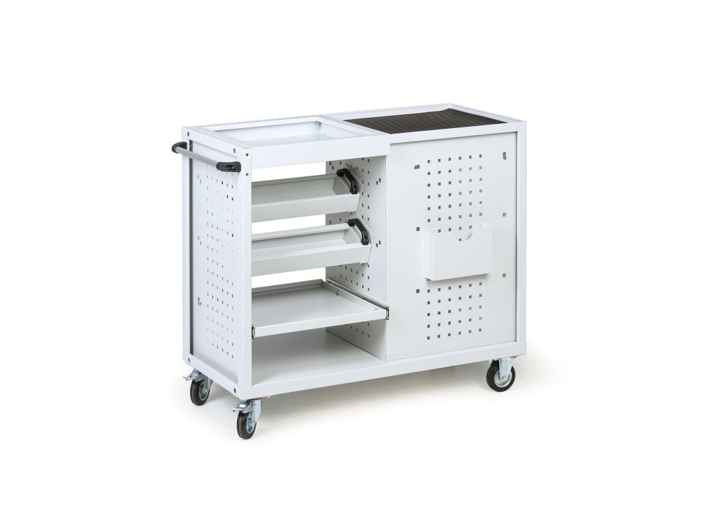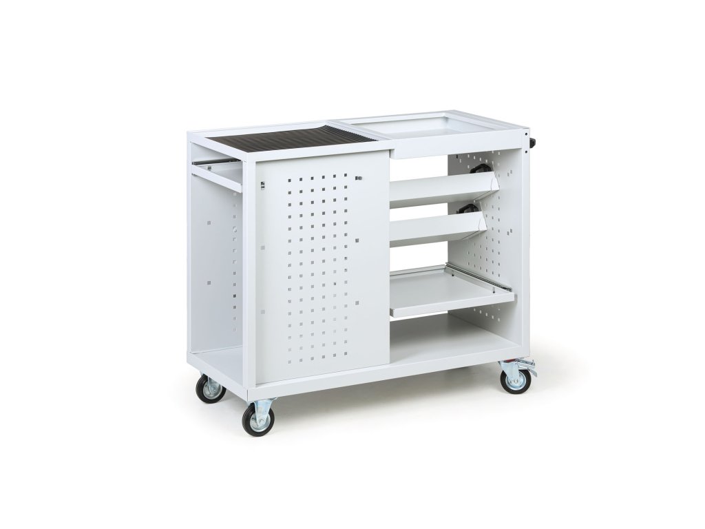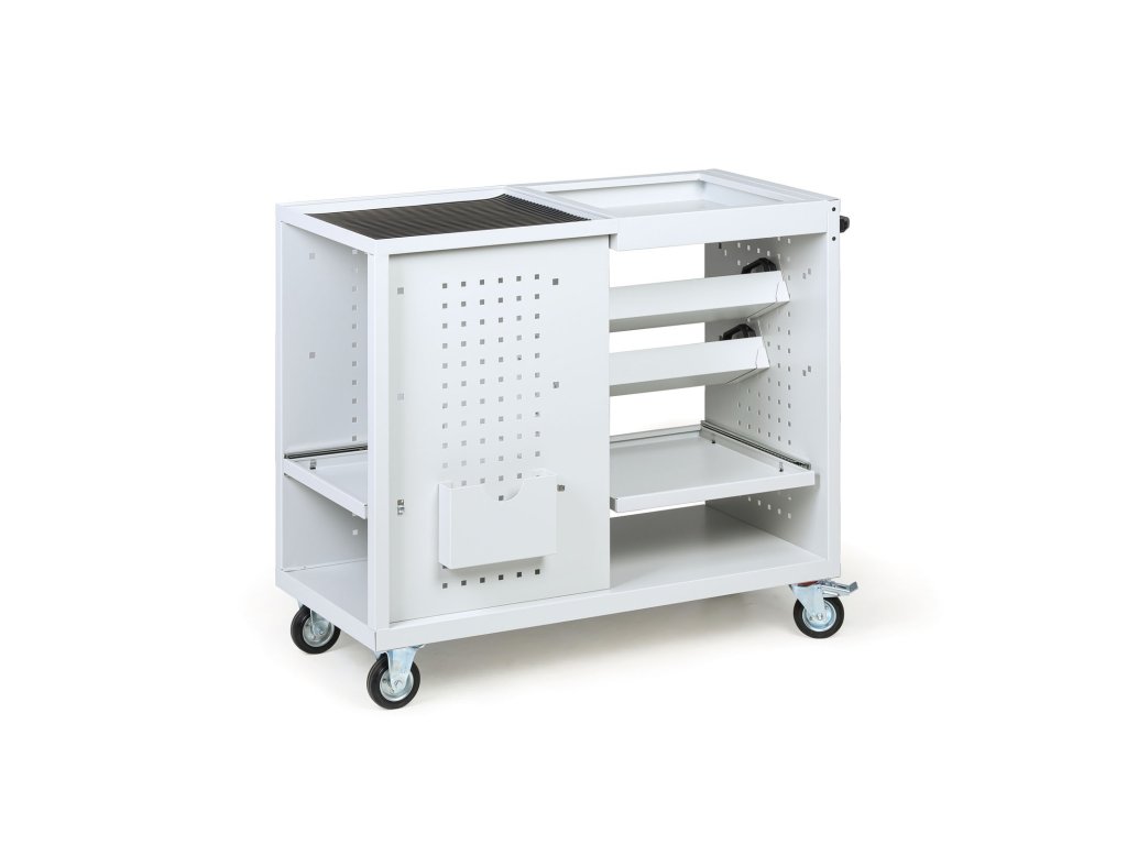 - stěny vozíku jsou vybaveny perforací pro uchycení držáků nářadí a držákem na dokumenty