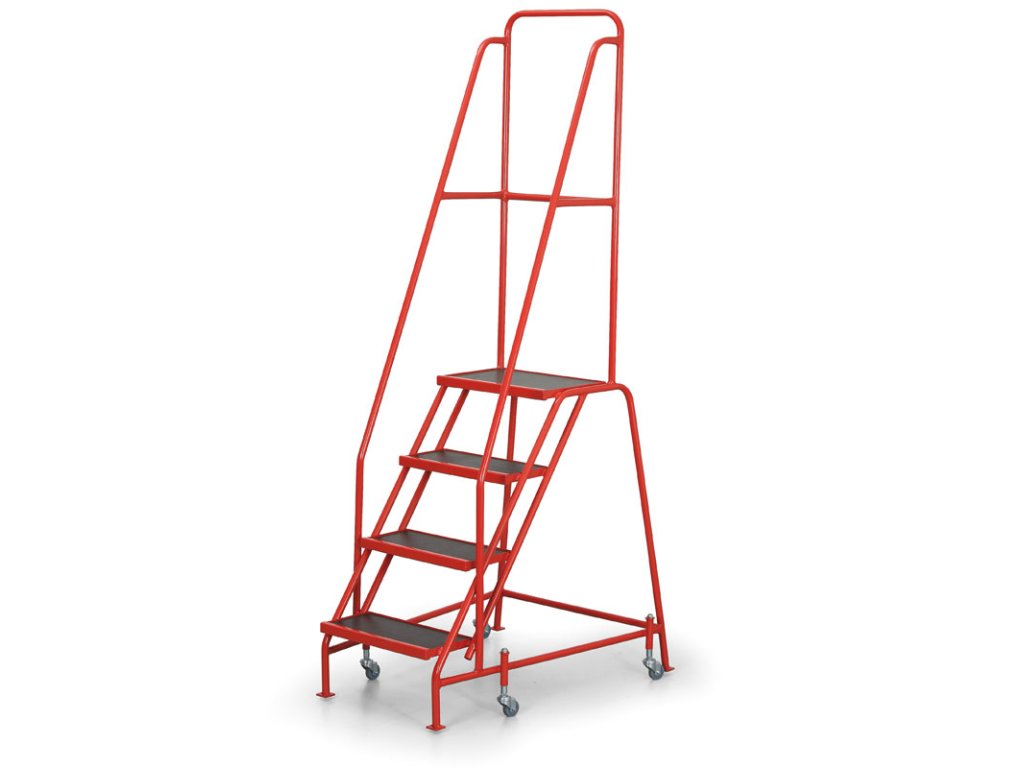 Pojízdný ocelový žebřík s plošinou, 4 příčky, výška plošiny 89 cm