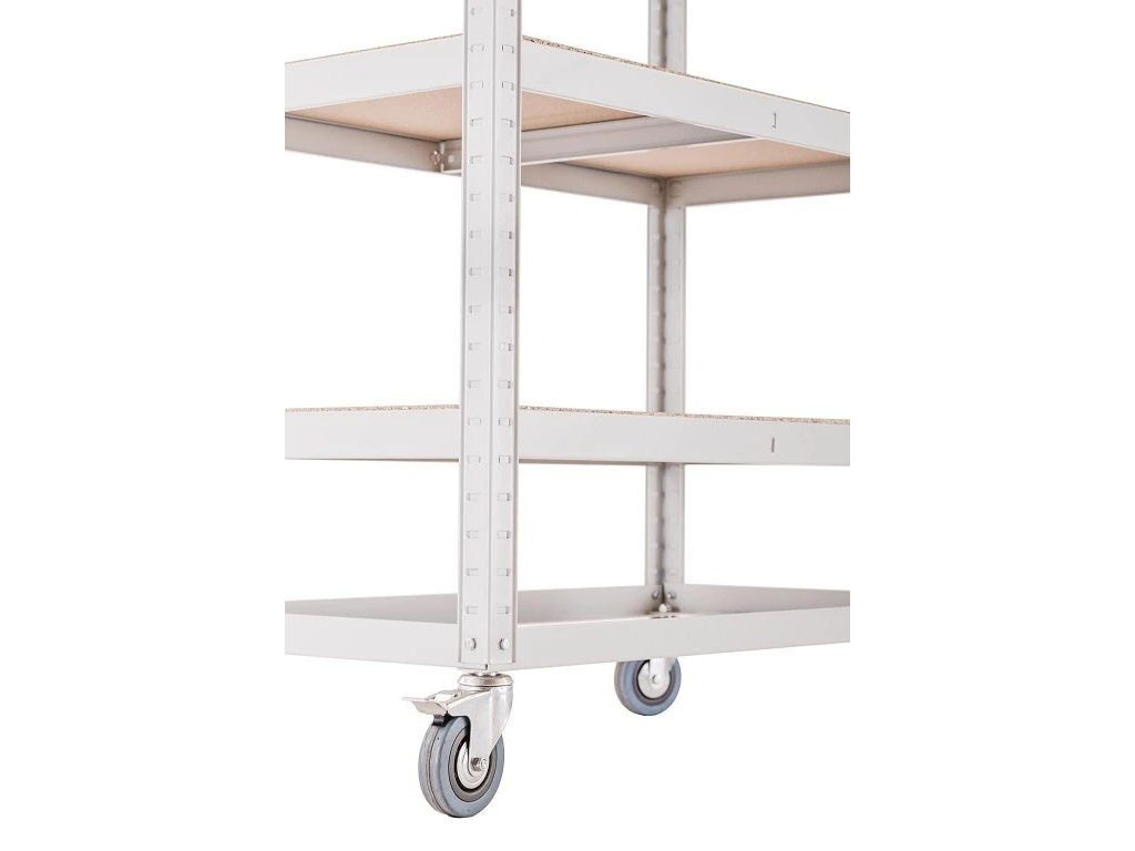 Tento pojízdný regál je ideálním řešením pro skladování v dílnách, garážích, skladech nebo třeba ateliérech. Díky otočným kolečkům můžete regál snadno přesunovat podle potřeby. Brzdy na dvou kolečkách zajišťují jeho stabilní pozici tam, kde je to potřeba. Stačí přijet s celým regálem na požadované místo, přeskupit potřebné předměty a poté vše vrátit zpět na své místo.