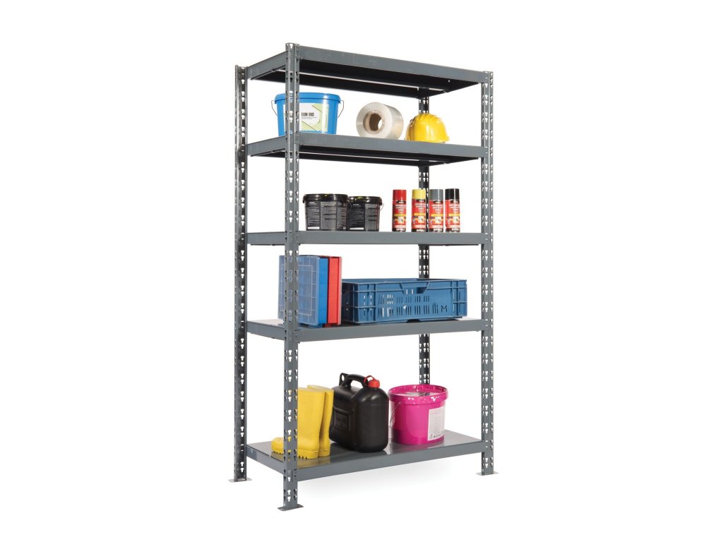 - policový regál vhodný do skladů, dílen, sklepů a garáží