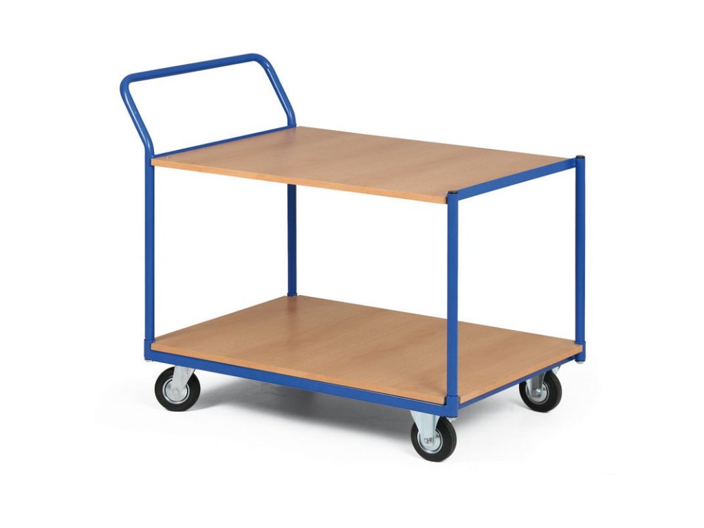 Přepravní vozíky s odolnou ocelovou konstrukcí jsou určeny do dílen, skladů a podobných prostor. Jsou dodávány ve čtyřech variantách podle typu polic: