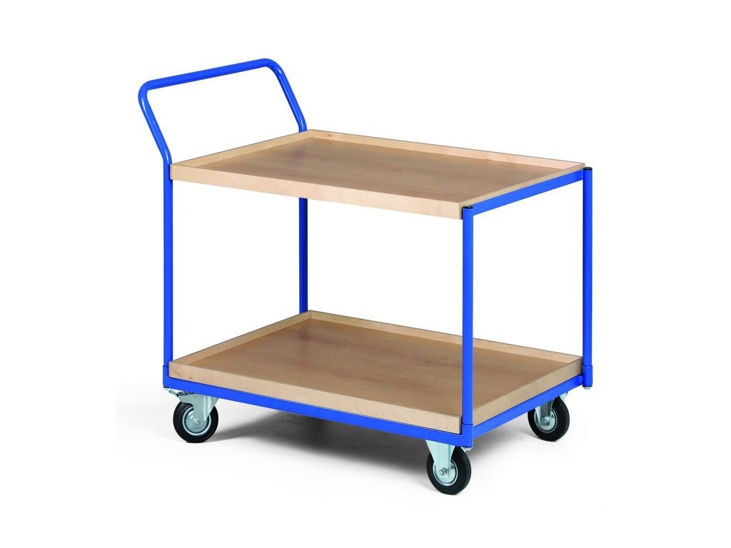 Přepravní vozíky s odolnou ocelovou konstrukcí jsou určeny do dílen, skladů a podobných prostor. Jsou dodávány ve čtyřech variantách podle typu polic: