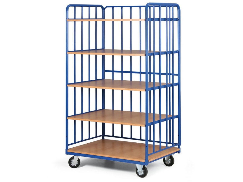 Policový vozík, 5 polic, 3 bočnice s výplní, nosnost 400 kg