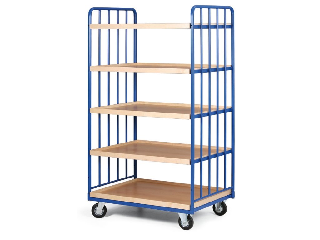 Policový vozík, 5 polic s hranou, 2 bočnice s výplní, nosnost 200 kg
