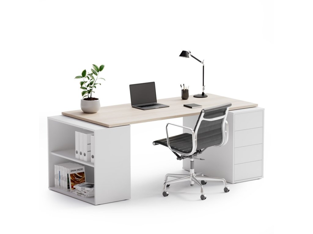Stolová deska BLOCK je určena pro umístění na skříňky a kontejnery pod stolové desky BLOCK. Součástí nanopodložka – chrání proti náhodnému posunu, vytváří pracovní místo bez nutnosti kotvení do skříněk.
