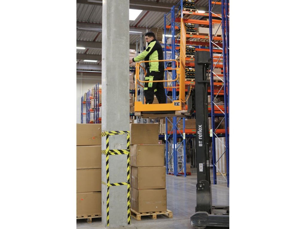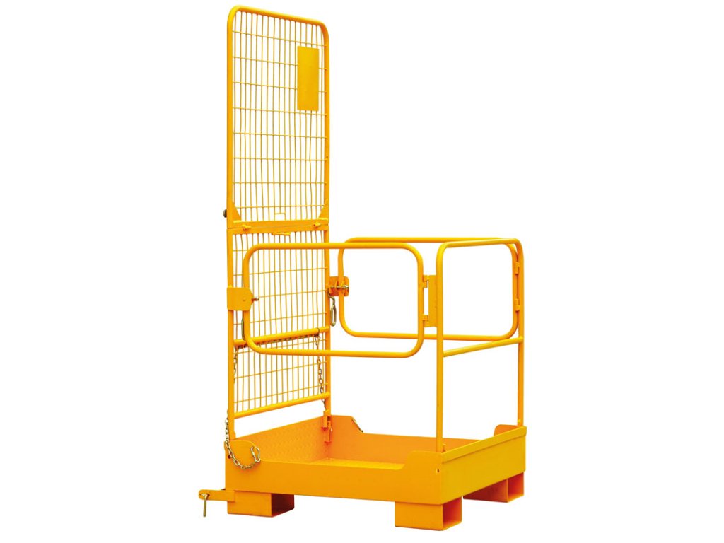 Plošina je určena pro nasunutí na vidlice vysokozdvižného vozíku. Využití nalezne především ve skladech při vychystávání z regálů, inventurách či montážních a údržbářských pracích ve výškách. Podlaha je opatřena protiskluzovou úpravou a drenážními otvory pro větší bezpečnost. Bezpečnost zajišťuje také zábradlí z trubek a pletiva. Vstupní boční dvířka jsou vybaveny panty s pružinou, které zabraňují jejich samovolnému otevření. K vidlicím vozíku je plošina zajištěna pomocí západek a řetězů. Plošina je skládací a při skladování šetří prostor.