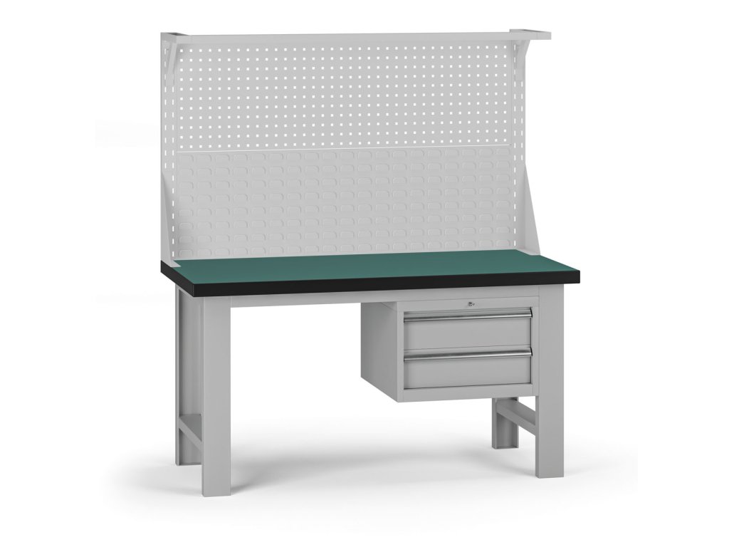 Pracovní stůl do dílny G8 s nástavbou, 1500 x 750 x 800 mm, 1x kontejner, 2 zásuvky, šedá