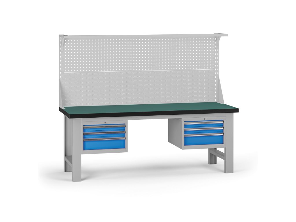 Pracovní stůl do dílny G8 s nástavbou, 2100 x 750 x 800 mm, 2x kontejner, 6 zásuvek, modrá