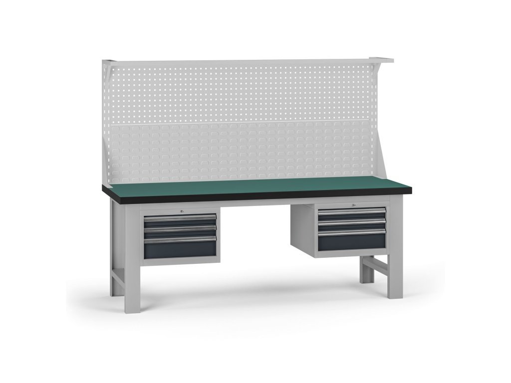 Pracovní stůl do dílny G8 s nástavbou, 2100 x 750 x 800 mm, 2x kontejner, 6 zásuvek, šedá