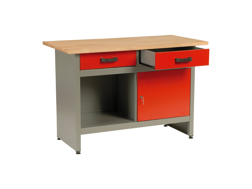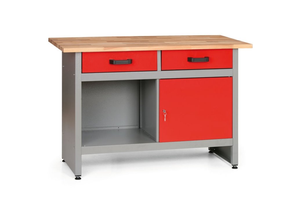 Pracovní stůl do dílny HOBBY I, 840 x 1200 x 600 mm, 2 zásuvky, 1 skříňka, 1 police