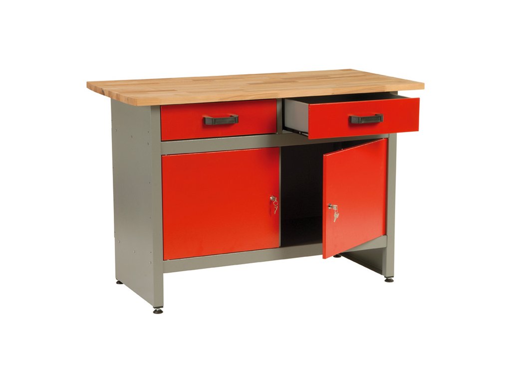 Pracovní stůl do dílny HOBBY I, 840 x 1200 x 600 mm, 2 zásuvky, 2 skříňky