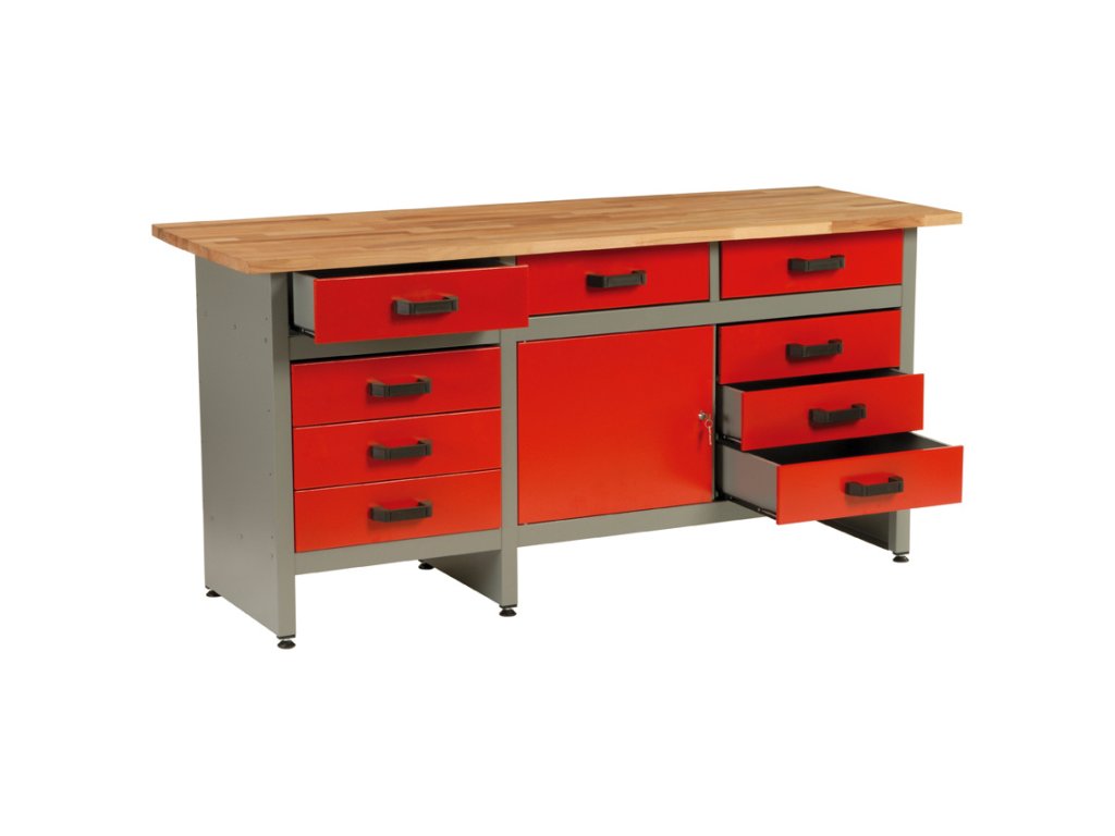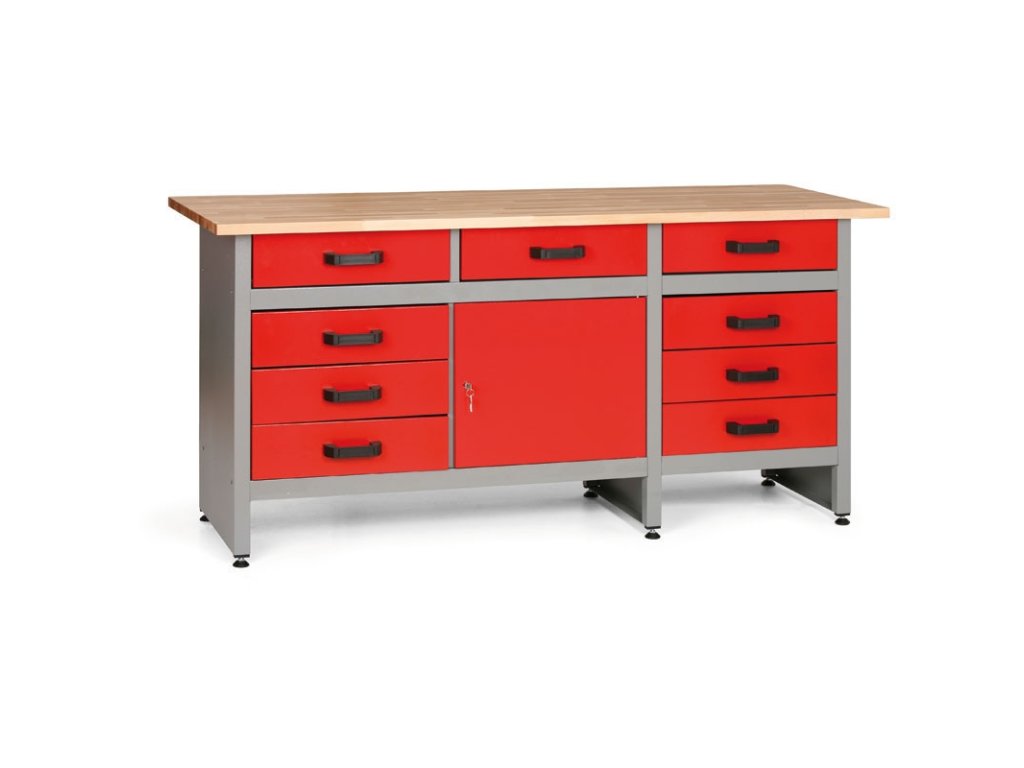 Pracovní stůl do dílny HOBBY I, 840 x 1700 x 600 mm, 9 zásuvek, 1 skříňka