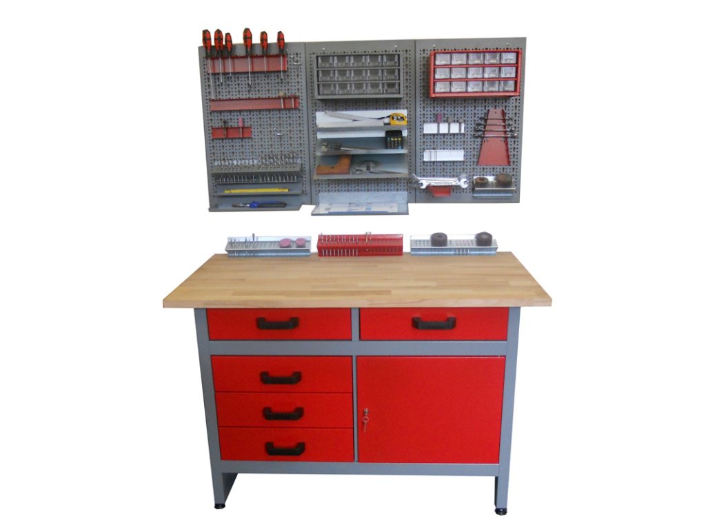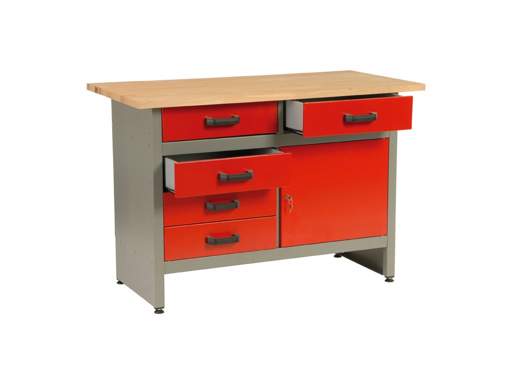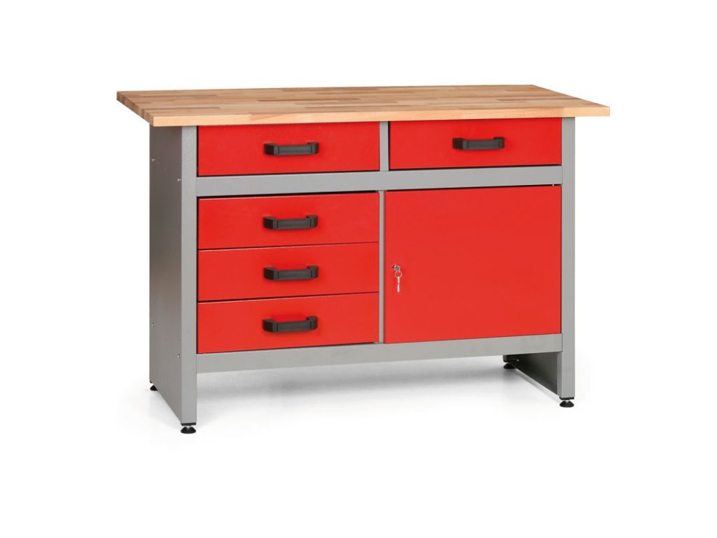 Pracovní stůl do dílny HOBBY I, 840 x 1200 x 600 mm, 5 zásuvek, 1 skříňka