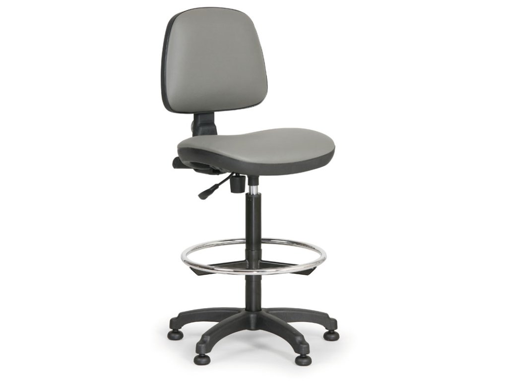 Tato pracovní židle je vybavena opěrným kruhem, který slouží jako opora pro nohy u zvýšených pracovních židlí a stoliček a zajišťuje tak potřebný komfort i při dlouhodobém sezení.