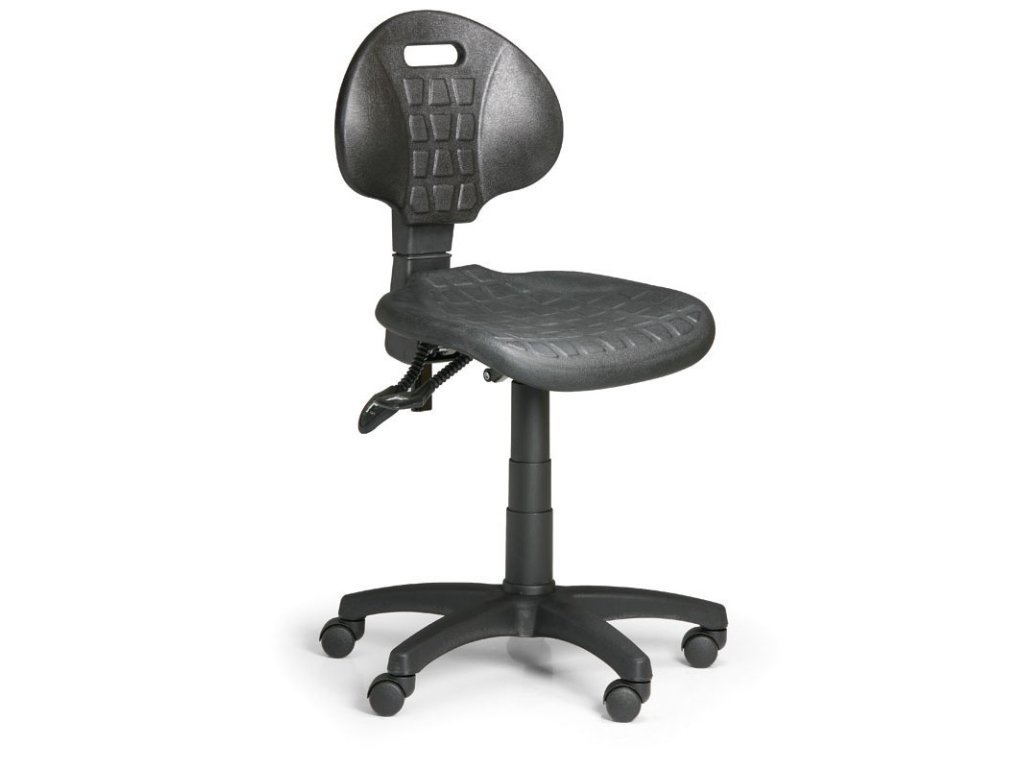 Pracovní židle PUR jsou vysoce odolné dílenské židle, jejichž dominantní prvek tvoří netoxický měkčený polyuretan. PUR materiál je nejen odolný vůči prachu, chemikáliím a dalším nečistotám, ale i mechanickému poškození v běžném provozu. Povrch židle lze navíc snadno udržovat běžnými dezinfekčními a čistícími prostředky.