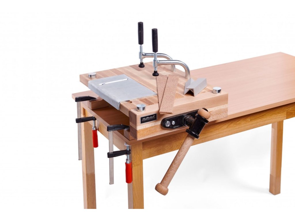 Clever Worktop je vybaven truhlářským svěrákem a 4 ks truhlářských poděráků, které zaručují v kombinaci se svěrákem pevné a stabilní upínání. Vyroben z bukové spárovky.