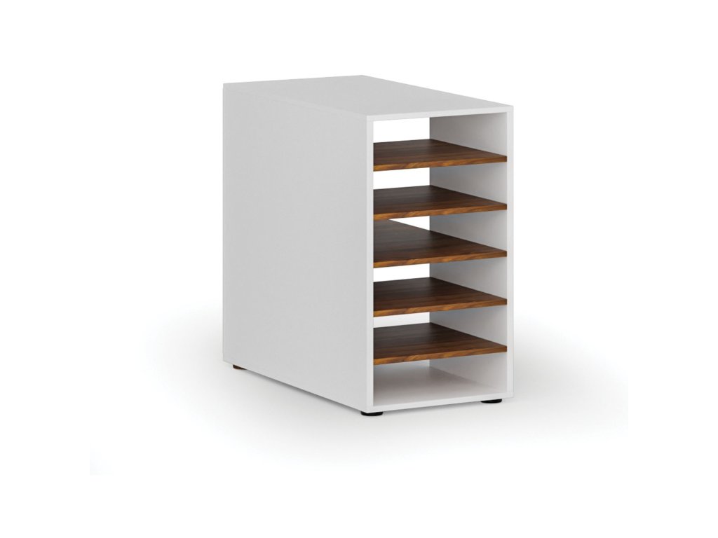 Přístavná policová skříňka k pracovnímu stolu PRIMO WHITE, pravá, bílá/ořech
