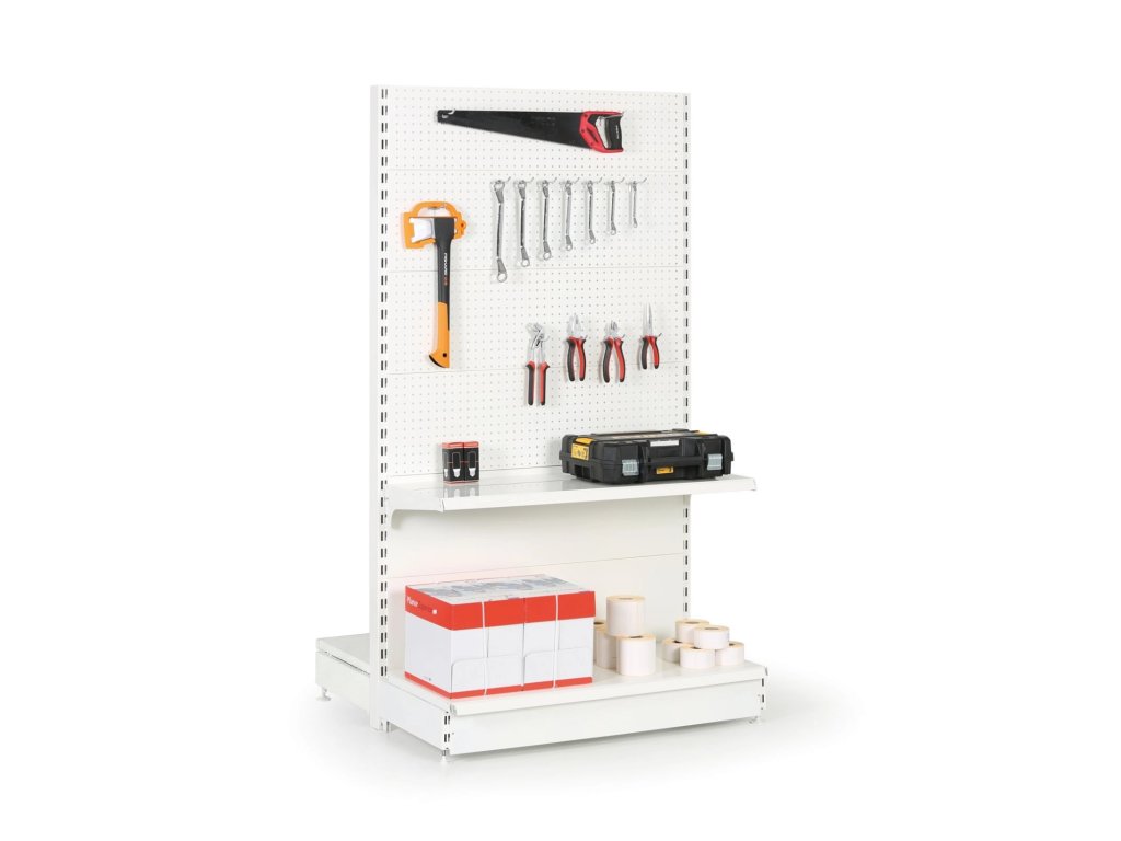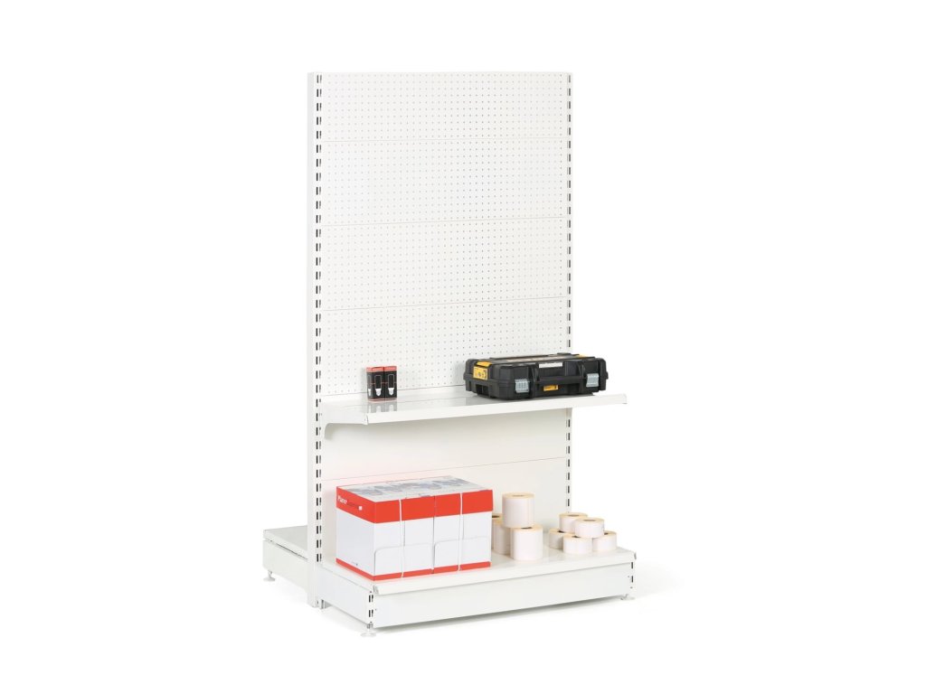 Prodejní regál oboustranný, perfo stěny, 1600 x 1000 x 900 mm, přídavný, bílá