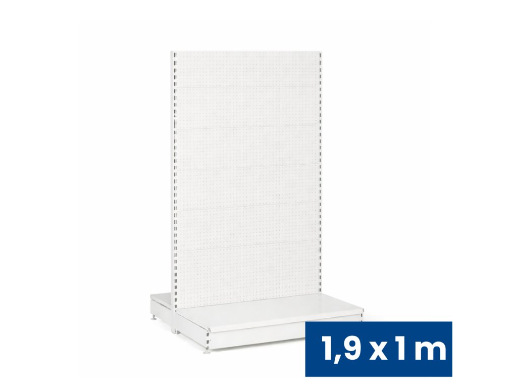 Prodejní regál oboustranný, perfo stěny, 1900 x 1000 x 900 mm, základní, bílá