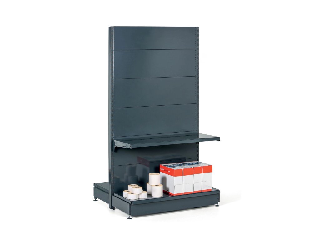 Prodejní regál oboustranný, plné stěny, 1600 x 1000 x 900 mm, přídavný, antracit