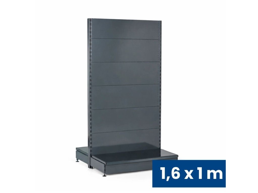 Prodejní regál oboustranný, plné stěny, 1600 x 1000 x 900 mm, základní, antracit