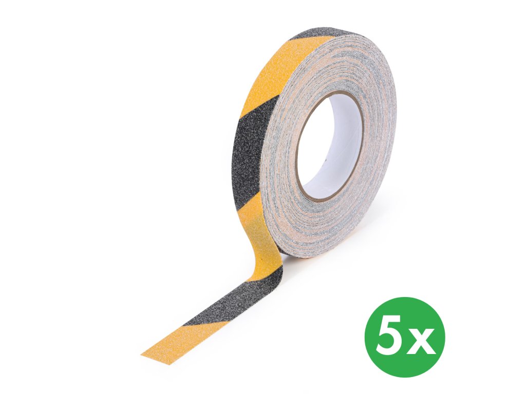 Protiskluzová páska, hrubé zrno, 25 mm x 18,3 m, balení 5 ks, černo-žlutá